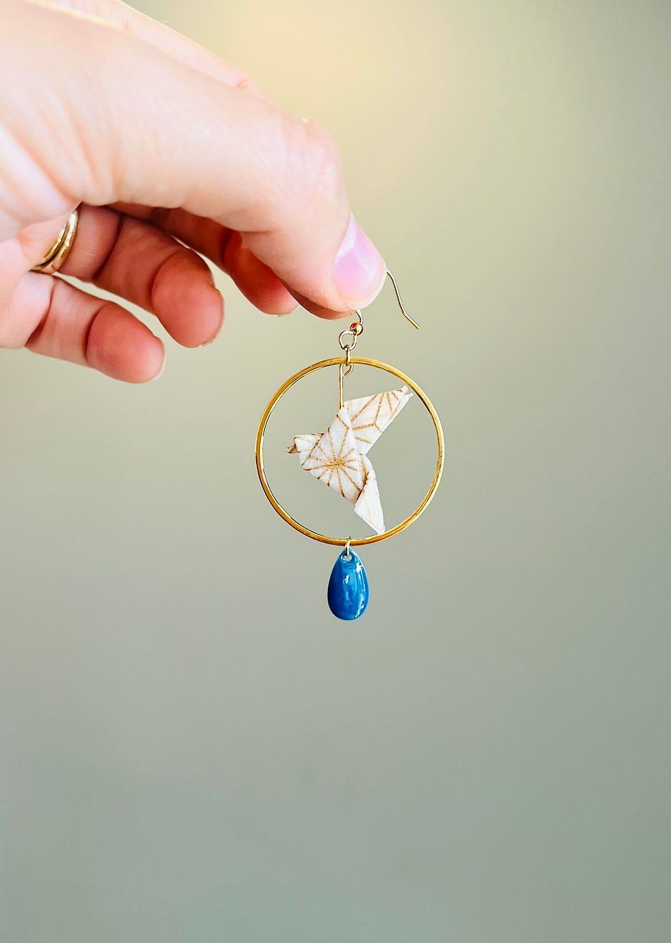 Boucles d'oreilles origami simples et légères, avec un anneau de 20 à 35 mm de diamètre.